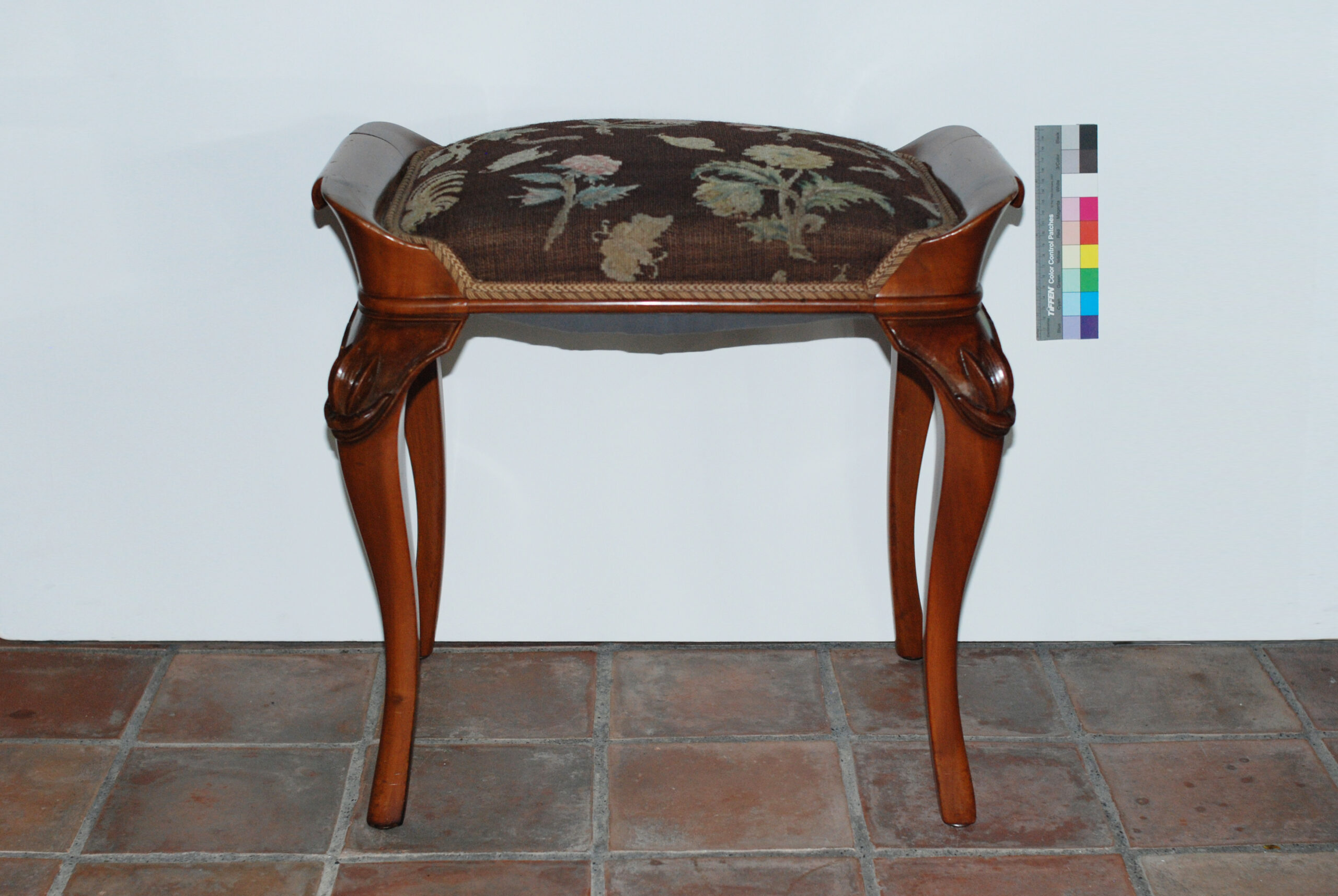 Hocker mit Polster, Herkunft und Alter sind nicht bekannt