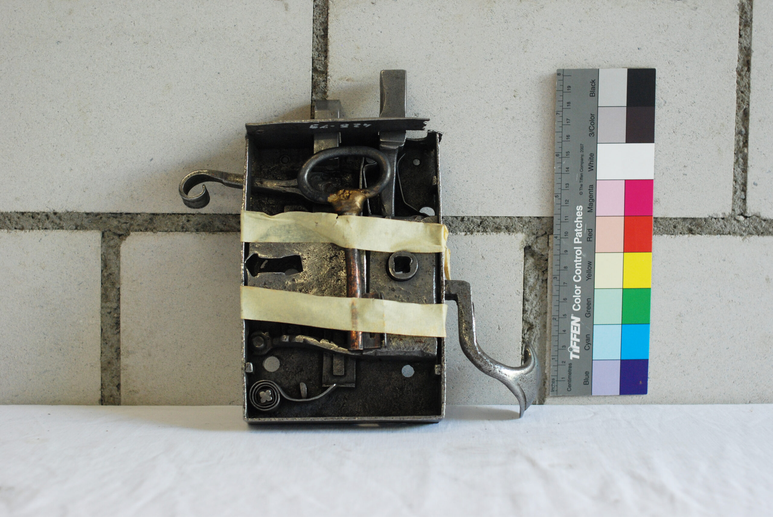 Türschloss mit Schlüssel aus Metall, Herkunft und Alter sind nicht bekannt