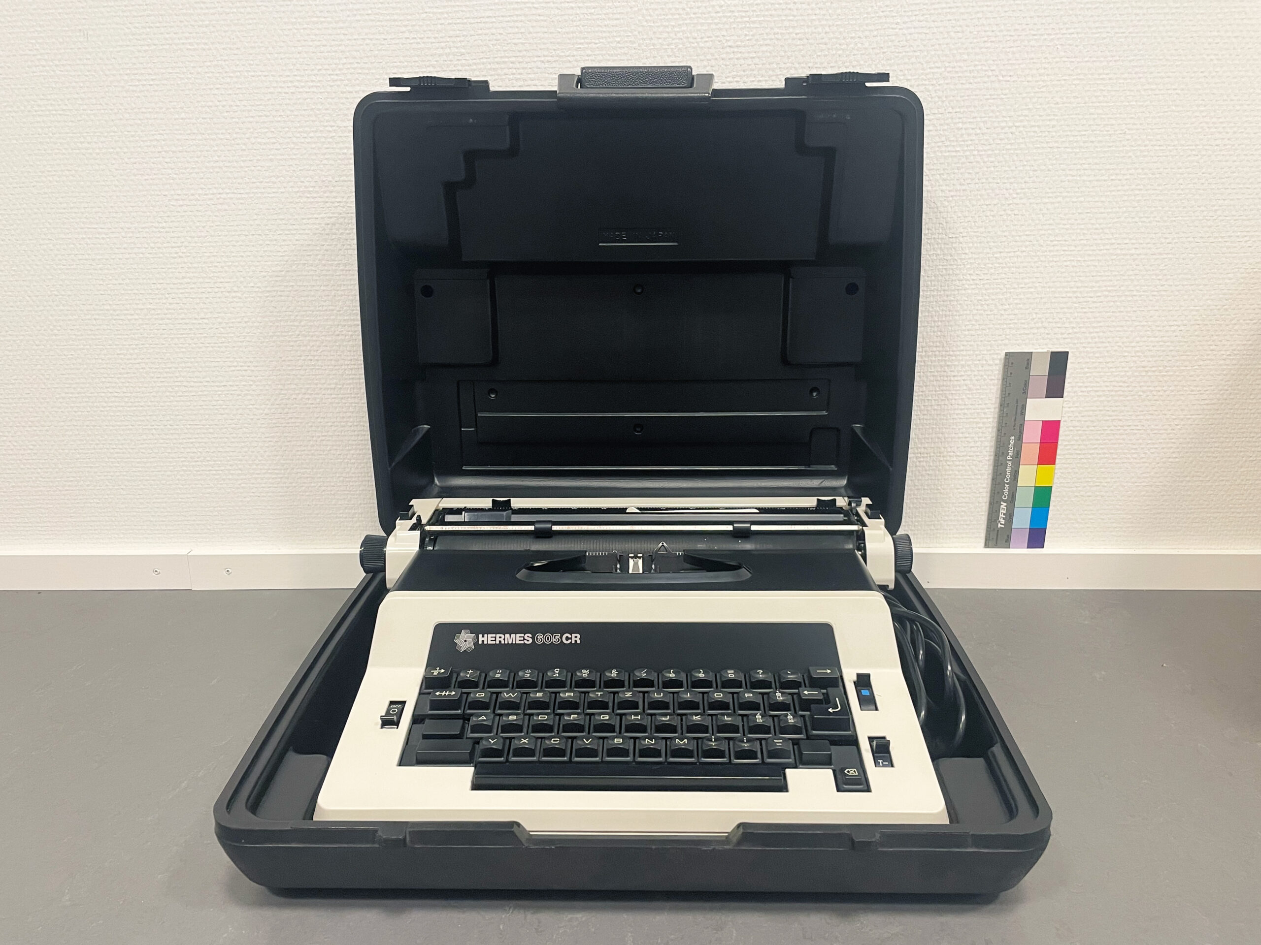 Tragbare Schreibmaschine der Marke «Hermes», Modell 605CR, mit Schalenkoffer, Alter unbekannt