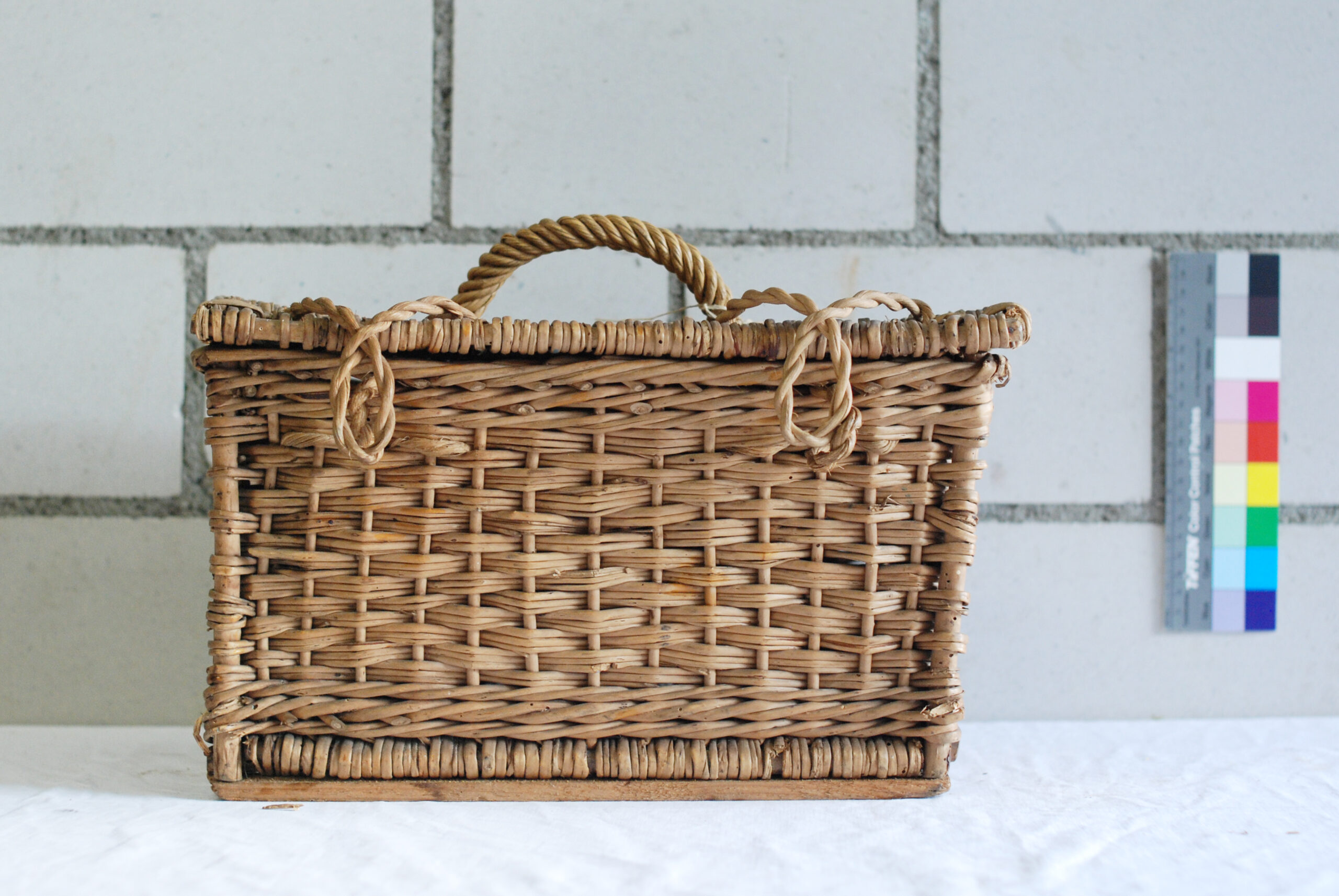 Wäschekorb aus Geflecht, Herkunft und Alter sind nicht bekannt