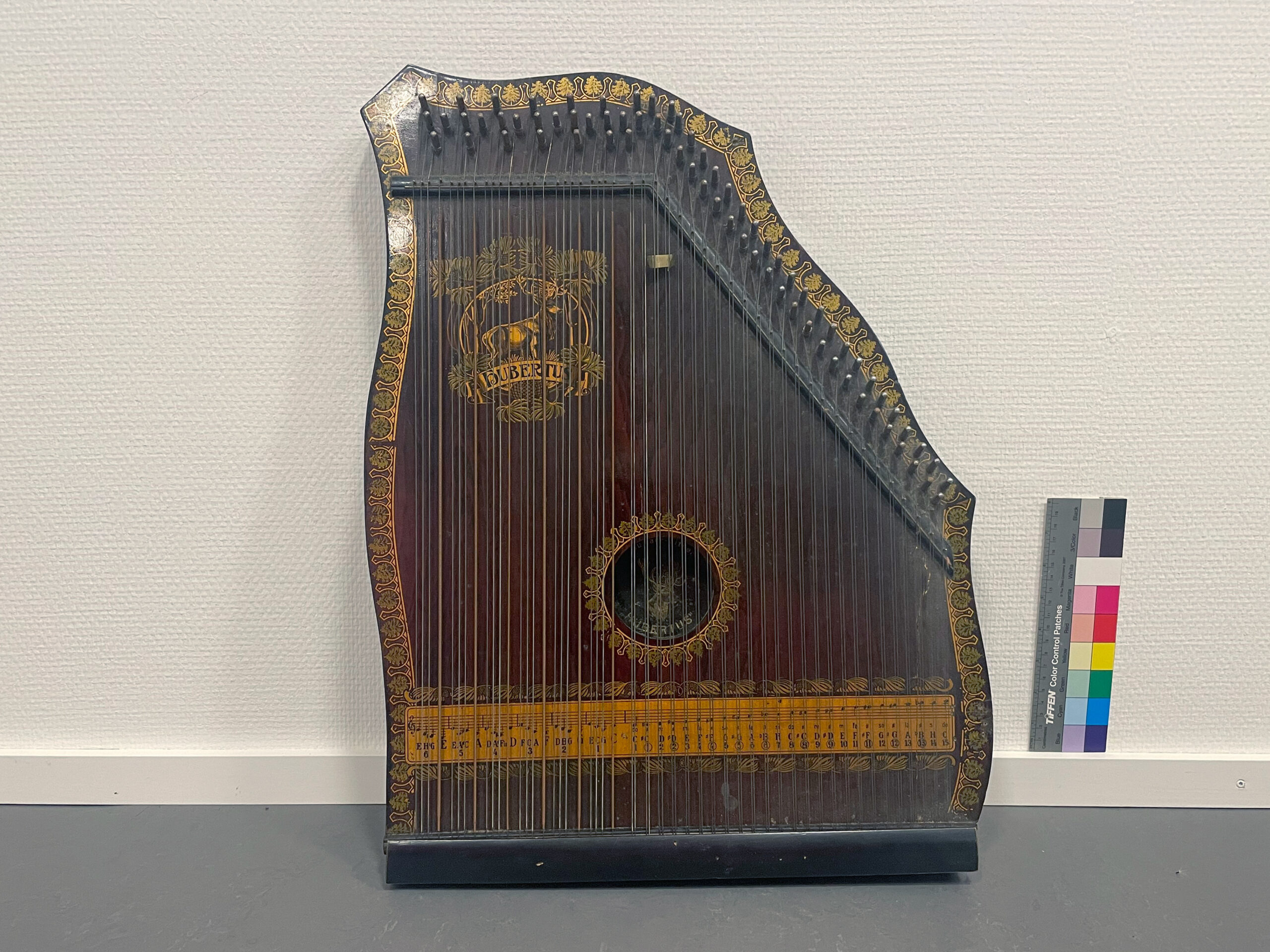 Zither der Marke Hubertus mit Notenblättern, Alter unbekannt