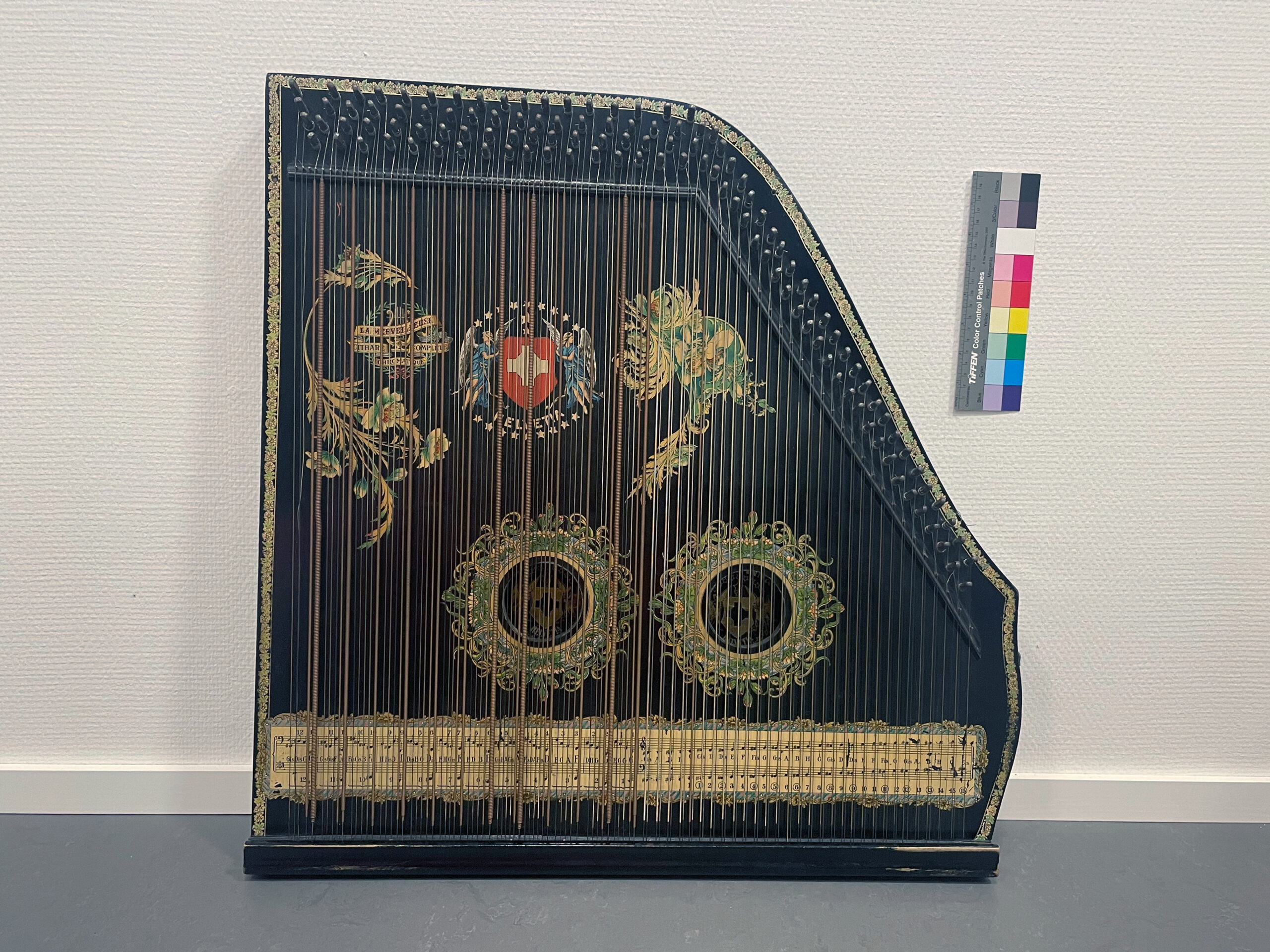 Zither der Marke Helvetia mit Notenblättern (ca. 60 Lieder), Alter unbekannt